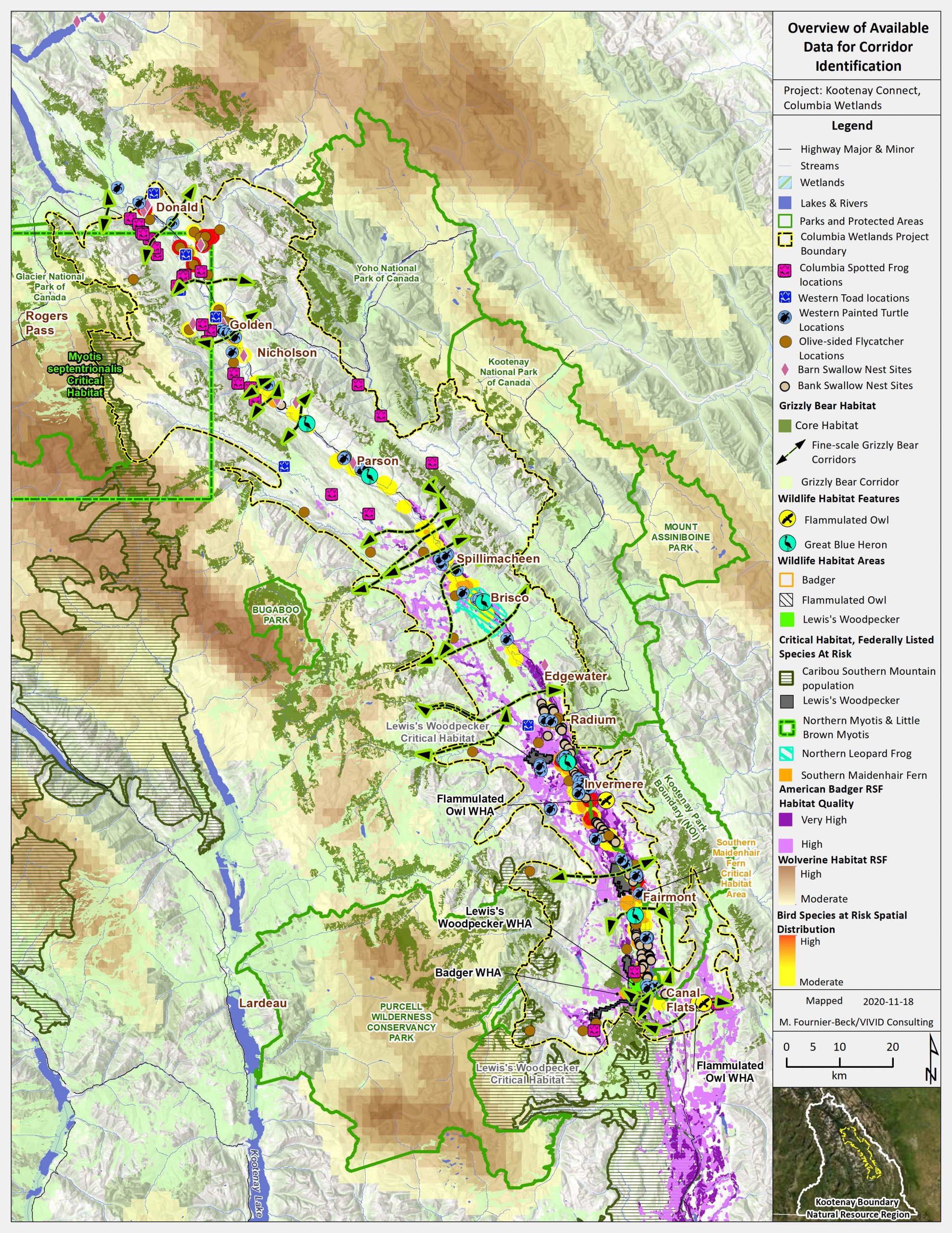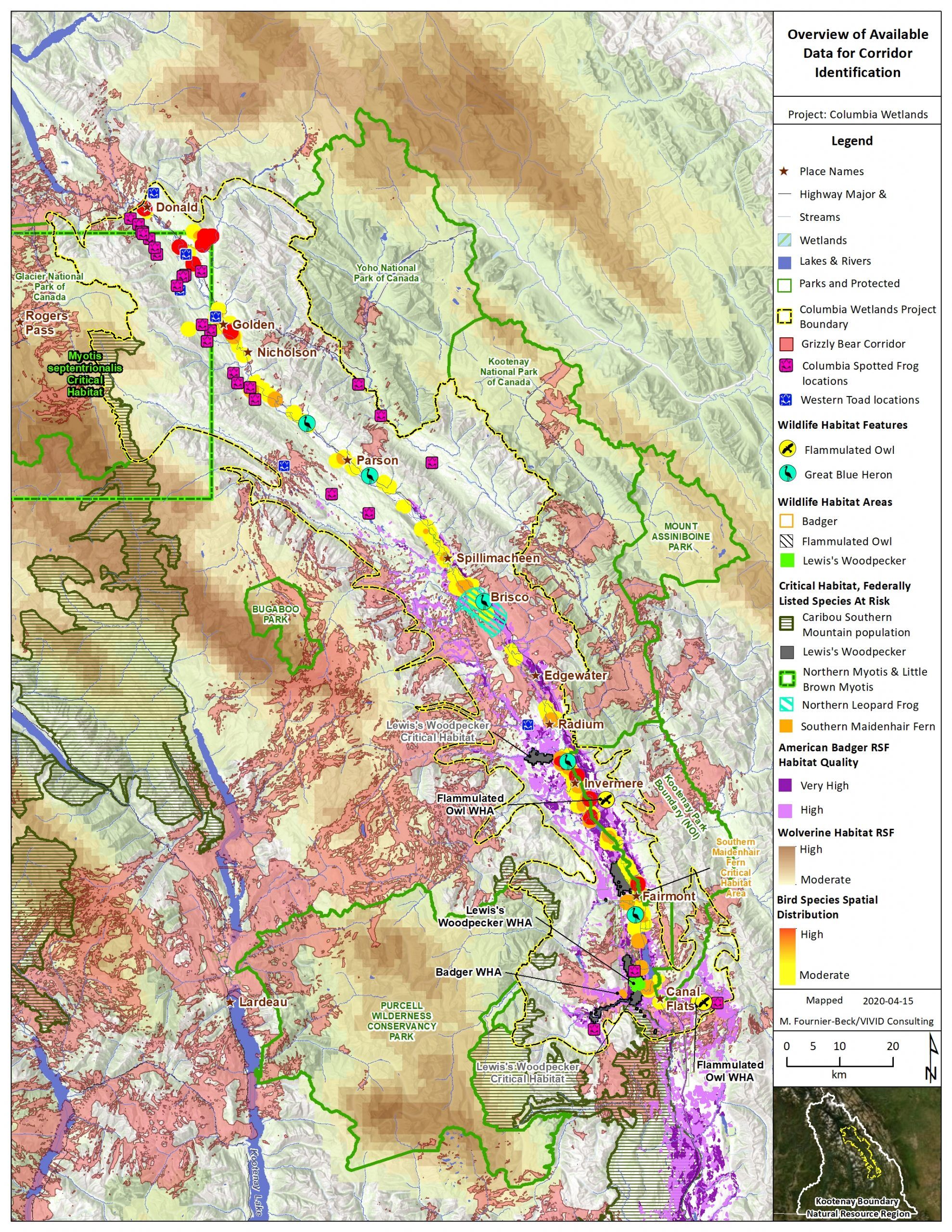 Map: Columbia Wetlands Corridor and Connectivity Data Overview by M. Fornier-Beck. 2020