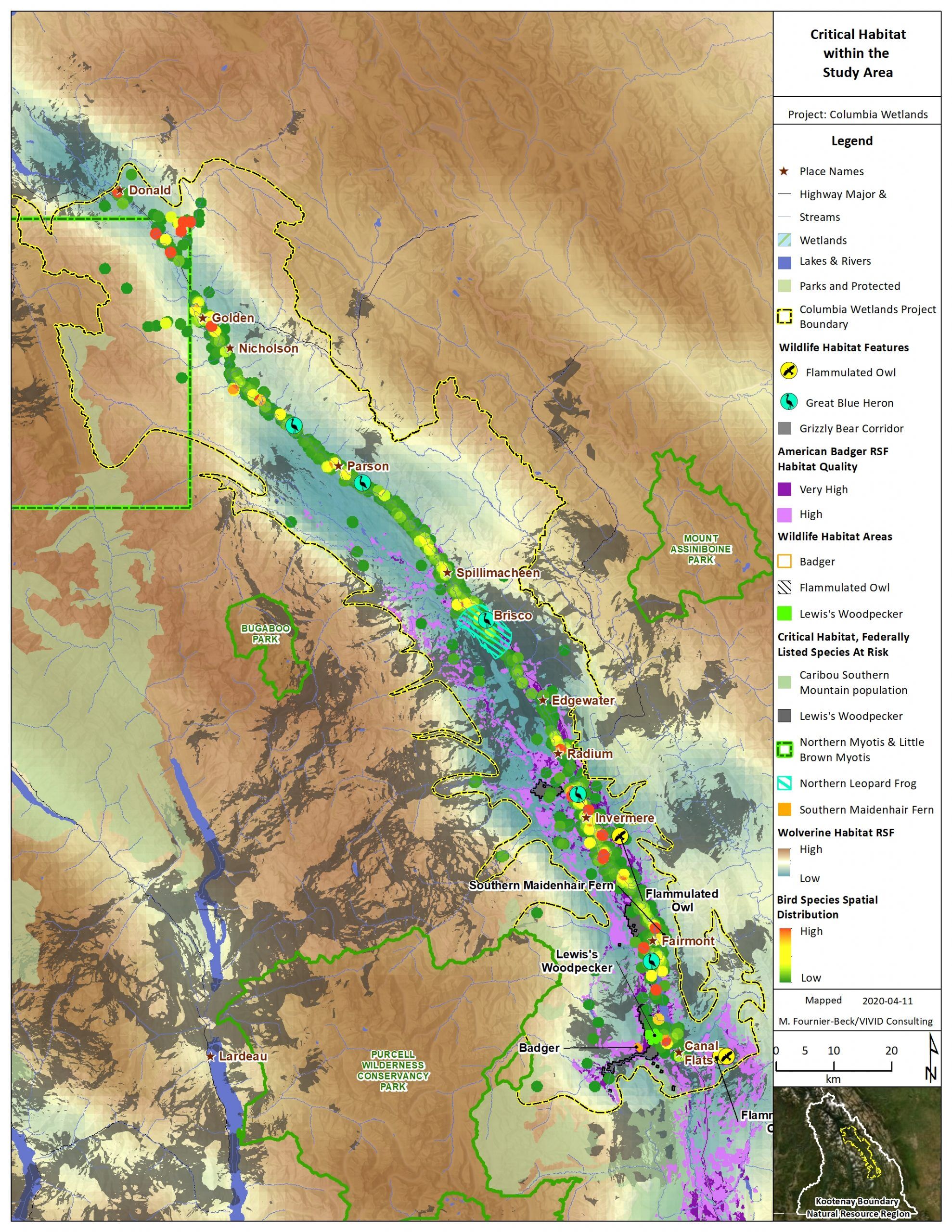 Map: Columbia Wetlands Critical Habitat by M. Fornier-Beck. 2020